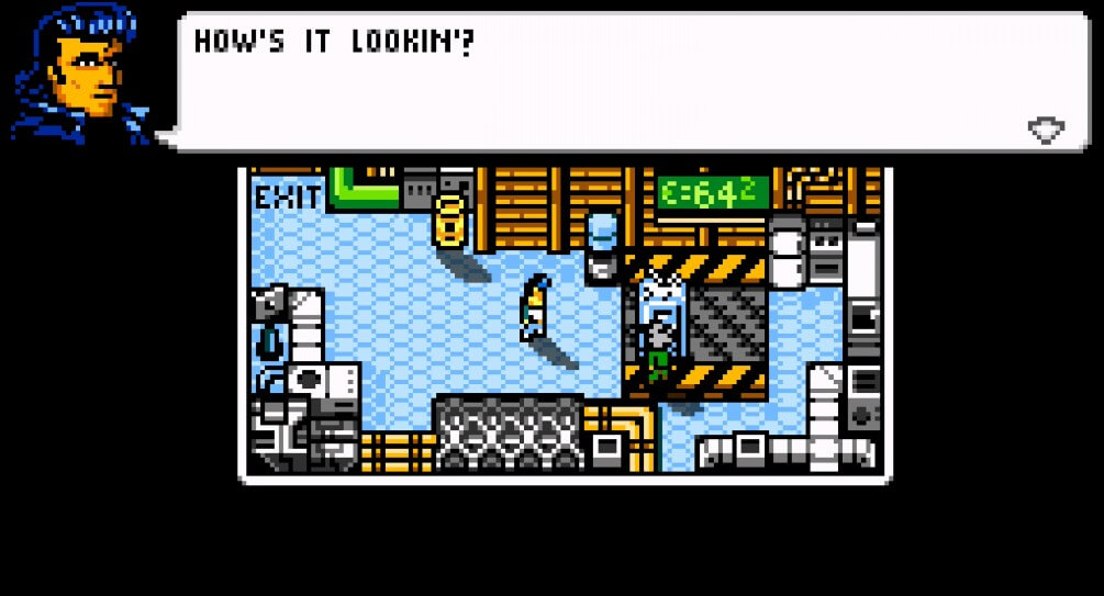 And the retro this is. Set in 1985, you take the role of “the Player”: a henchman working under the supercriminal Jester. You’ll be ‘rescued’ by a time-traveling phone booth after a botched robbery attempt, only to get stuck in a new timeline.