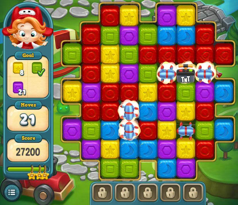As you play you will be able to gather a variety of interesting power-ups that enrich the game experience. These can be more and more powerful, depending on the amount of blocks you remove from the game board. You can either receive rockets that clear a single vertical or horizontal line, but at the same time you can use some TNT to just obliterate everything that stands in your path.